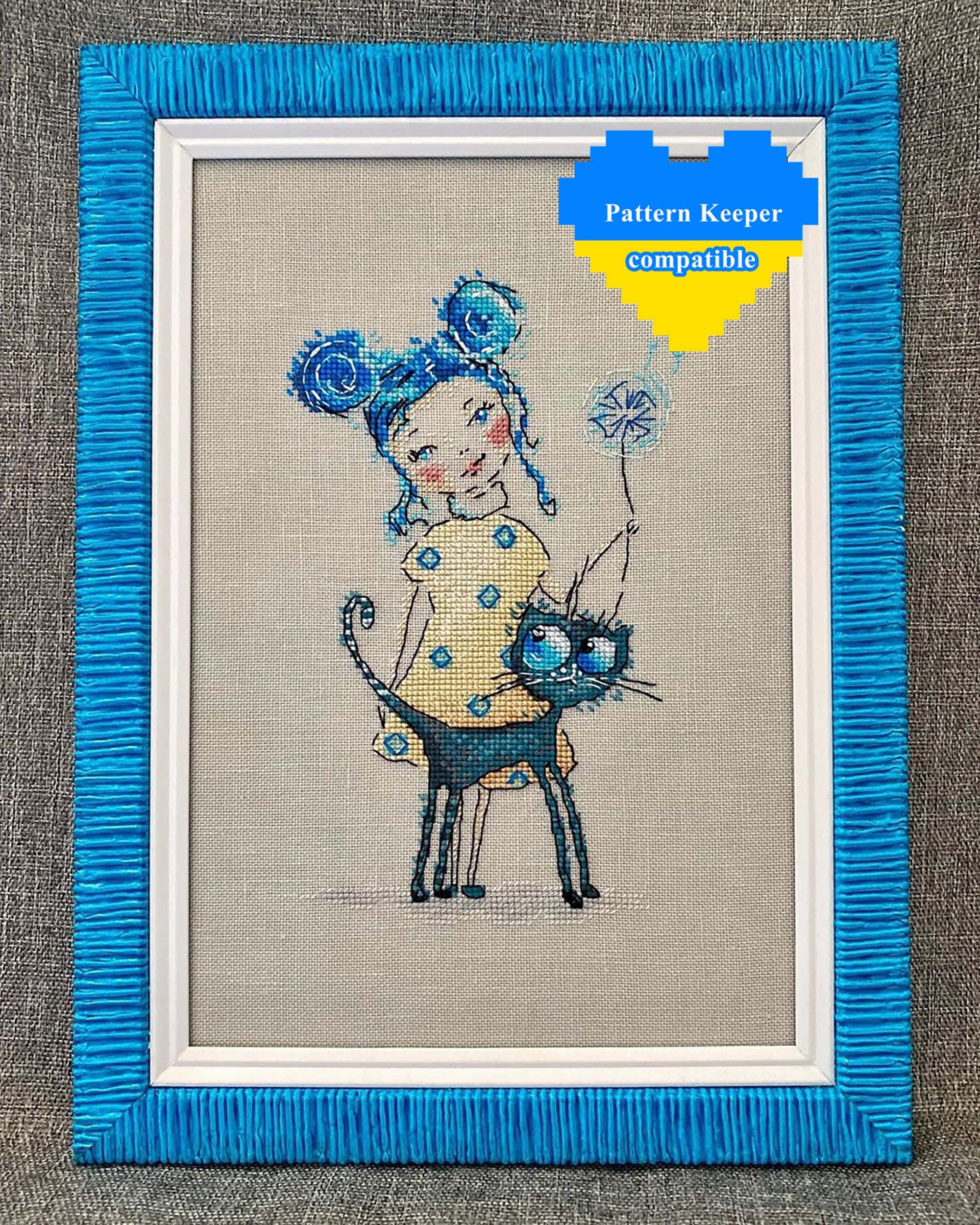 Blue Hair Girl And Cat Cross Stitch Pattern Pdf Cute Girly Art Etsy